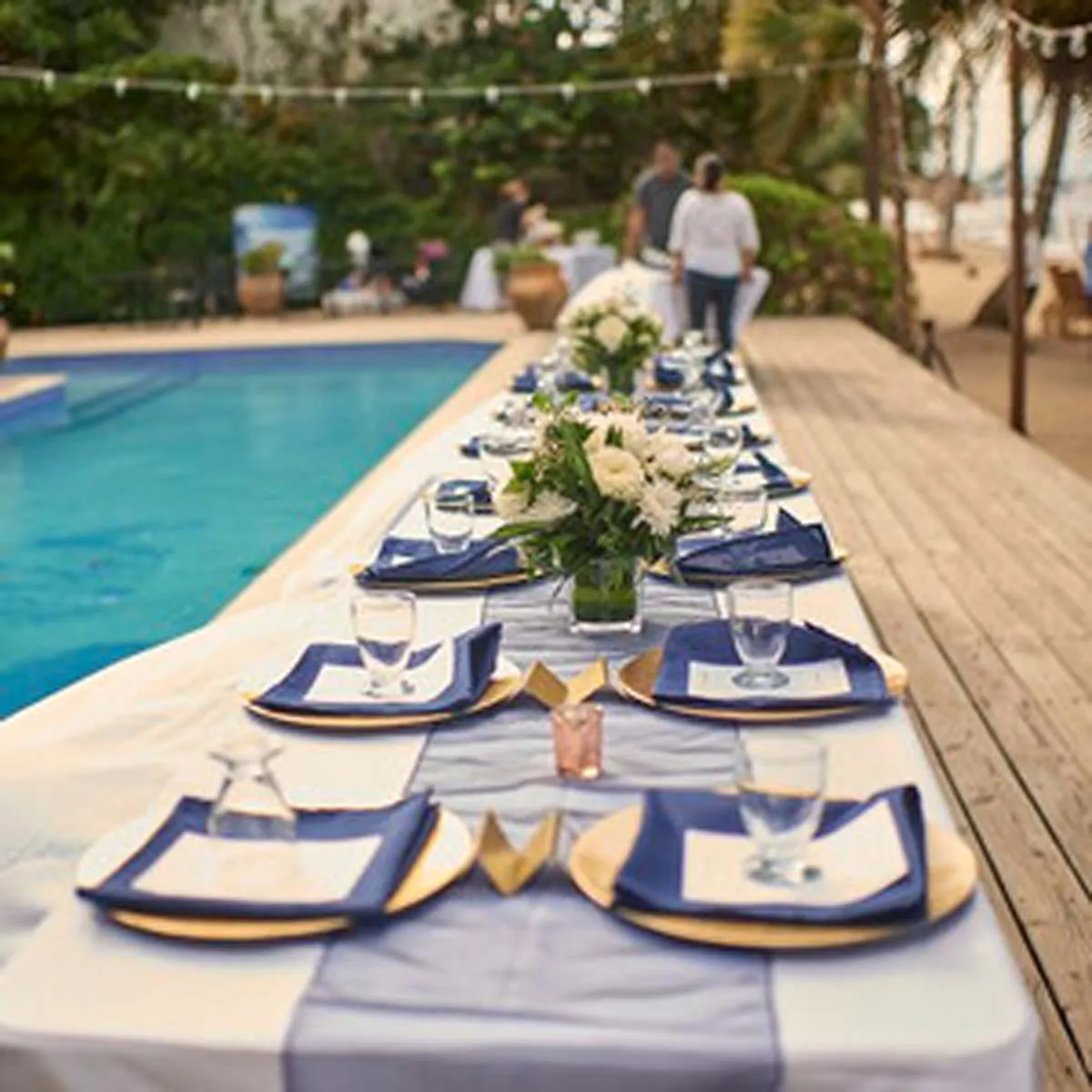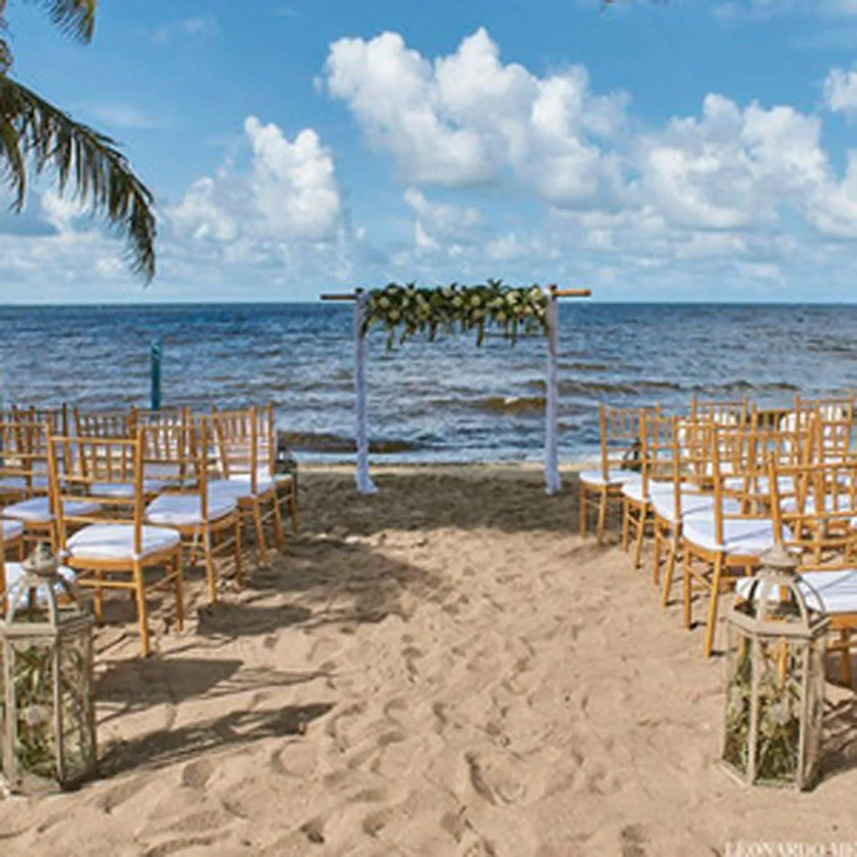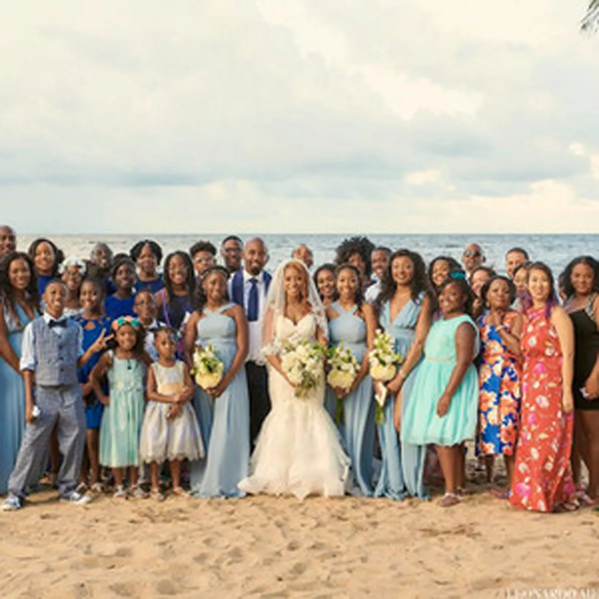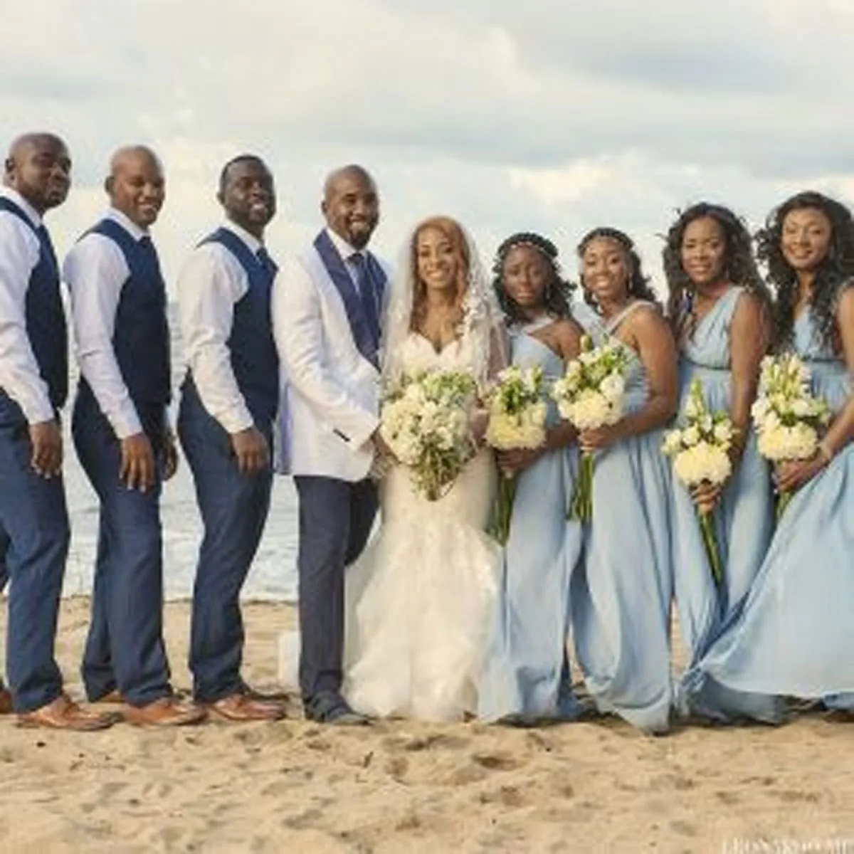 Can we just sit and enjoy this amazing color palette for a while? With beautiful shades of dusty blue, pops of gold, and simple whites… this palette was perfection for their beach wedding. Marjorie and Ivon wed on a quiet sandy beach. They kept it a formal affair, with the men wearing dapper suites, and the women in beautiful blue dresses. A local chef prepared a traditional Caribbean buffet, with his spin on inspired Caribbean cuisine, and DJ DZL kept the party in full swing all night long. With careful attention to all the small details, we provided the bride with a beach-side experience like no other. We hope their friends and family remember this incredible day, and send our love to the newlyweds.
