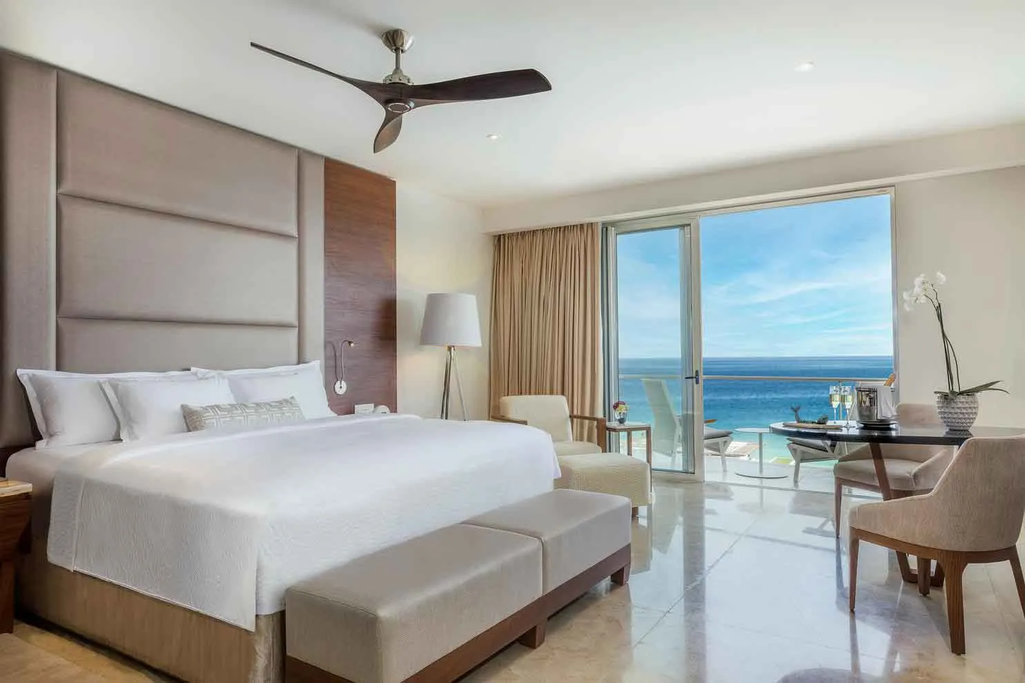 Le Blanc Spa Resort Los Cabos is an ultra-luxury, adults-only, all-inclusive resort located along the scenic Corridor between Cabo San Lucas and San José del Cabo. The resort offers elegantly appointed suites with private balconies, premium butler service, and luxurious touches like Bulgari bath amenities and nightly aromatherapy. Guests can enjoy world-class dining at multiple gourmet restaurants, sip handcrafted cocktails and premium spirits, relax at expansive infinity pools overlooking the Sea of Cortez, or indulge in the Blanc Spa’s signature hydrotherapy and wellness experiences. With its serene atmosphere, breathtaking ocean views, and meticulous attention to detail, Le Blanc Los Cabos provides an unforgettable, romantic escape for couples, honeymooners, and travelers seeking refined luxury.