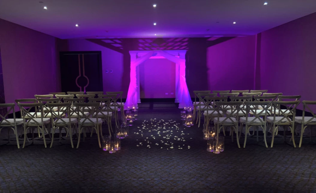 Blanc Breeze is a charming enclosed venue with refreshing air conditioning, perfect for an intimate and elegant wedding gathering.