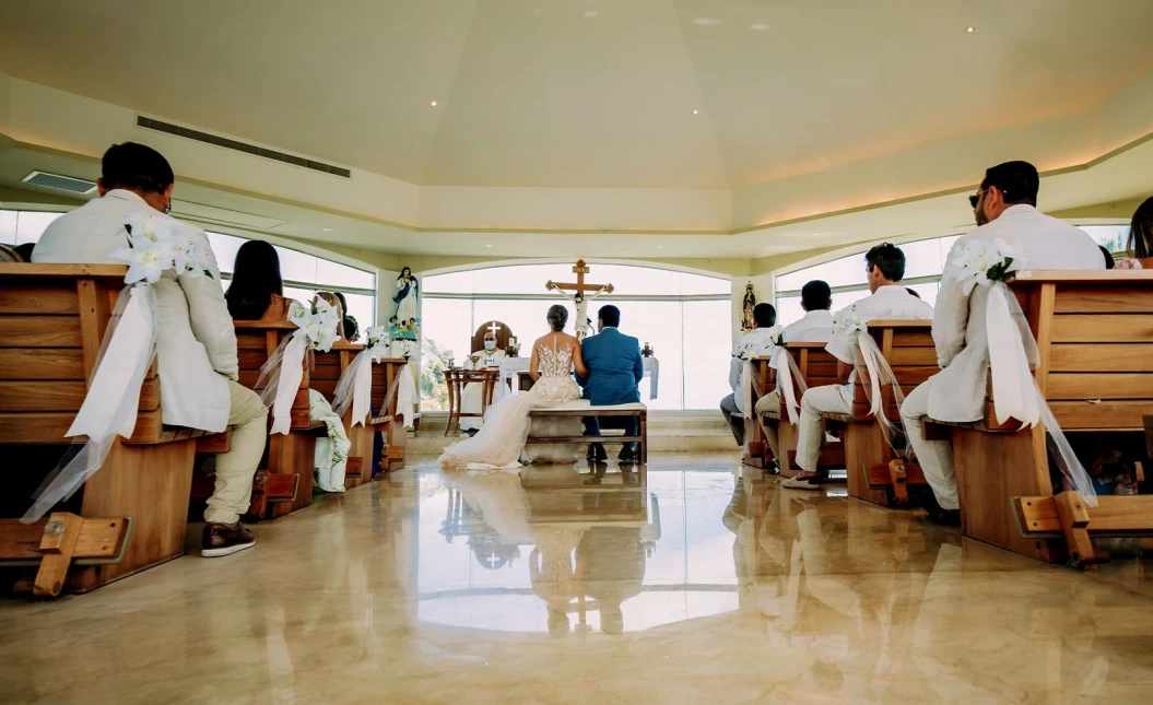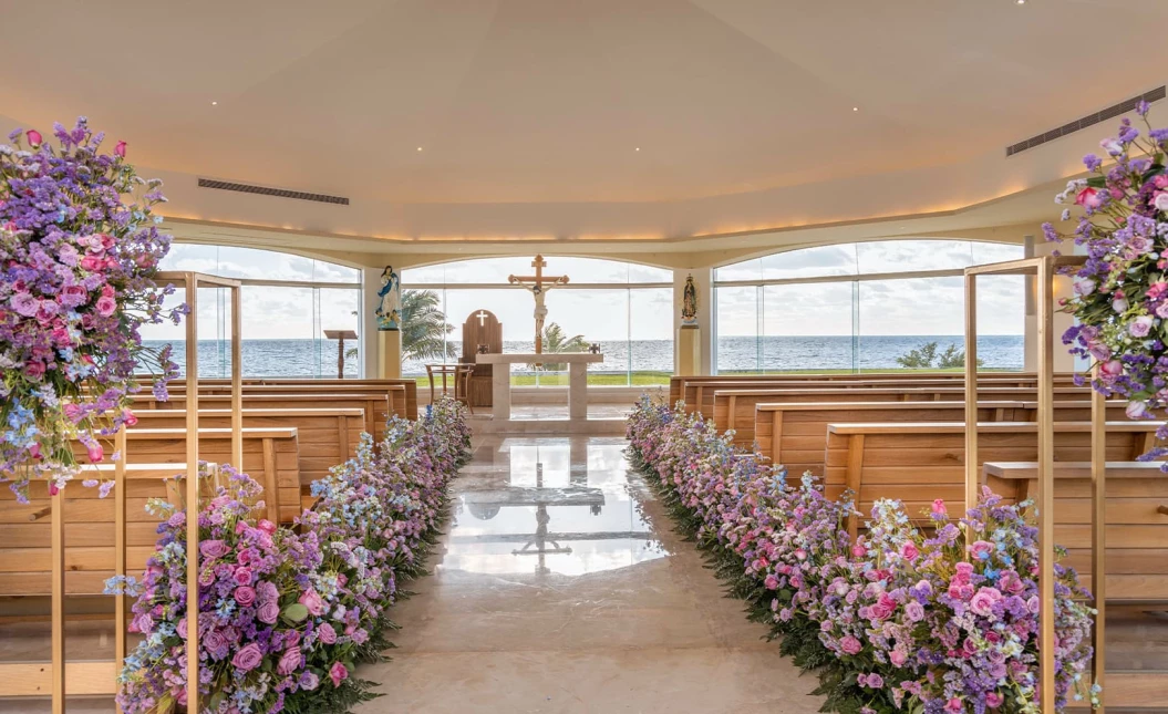 This elegant chapel accommodates 60 seated guests (or 80 standing) and provides a serene, spiritual setting for your wedding.